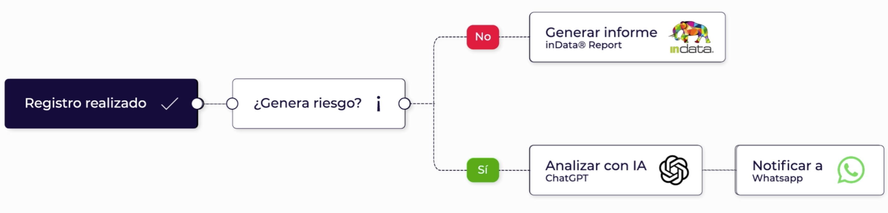 inData Workflow está integrado de forma nativa con el resto de funcionalidades de inData, permitiendole potenciar la gestión de novedades, registros, minutas, verificación de asistencia y más.